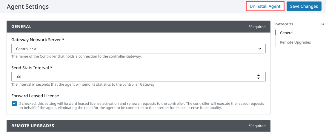 To remove an agent, go to your controller on the Network section of the Gateway.
