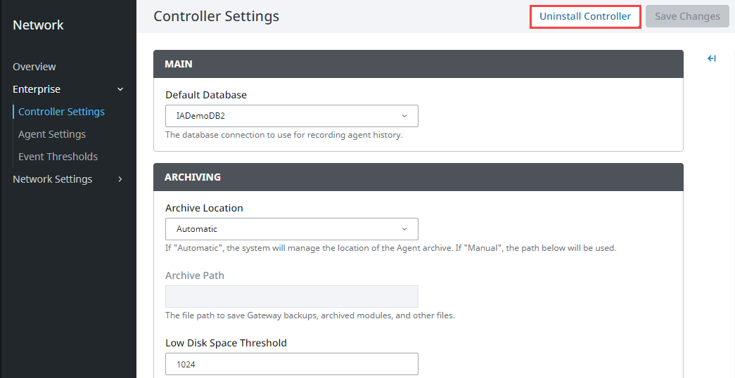 A confirmation window will appear. Click Uninstall to complete uninstalling the controller.