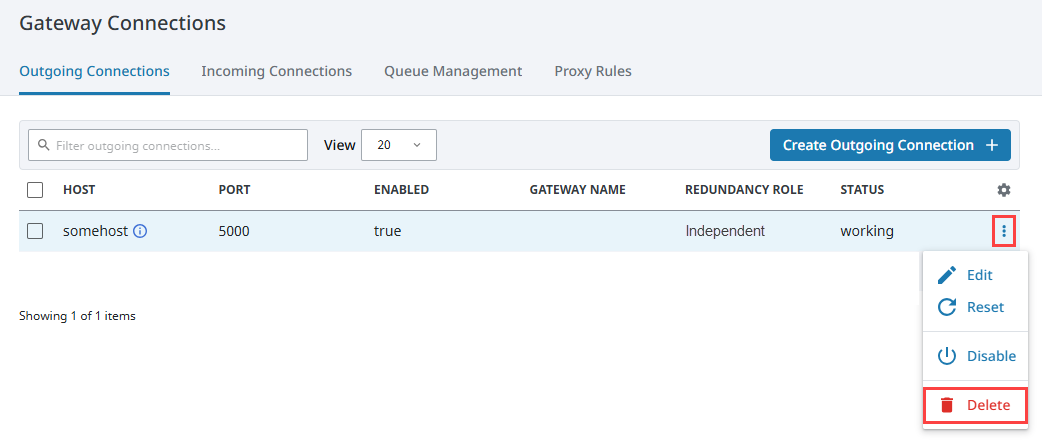 To delete a connection, navigate to Network > Gateway Network > Connections.