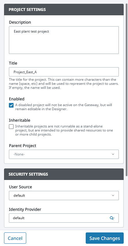 | Enabled | A disabled project will not be active on the Gateway, but will remain editable in the Designer. |