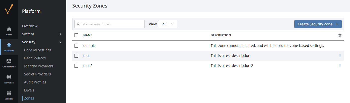 Under the Platform tab of the Gateway Webpage go to Security > Security Zones.