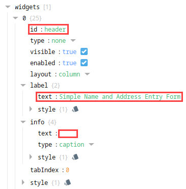 | props.columns.items[0].rows.items[0].widgets[0].label.text | Simple Name and Address Entry Form |