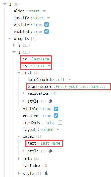 | props.columns.items[0].rows.items[1].widgets[1].id | lastName |