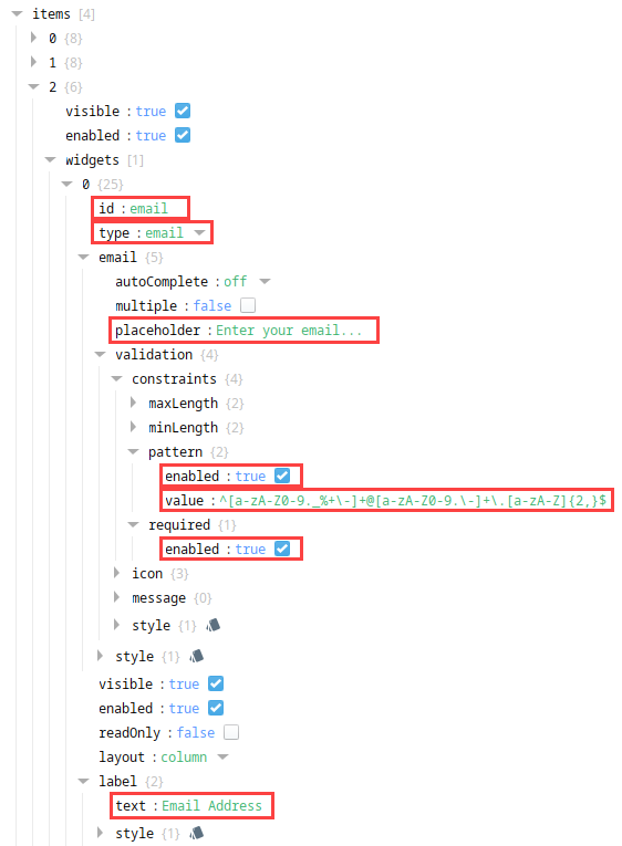 | props.columns.items[0].rows.items[2].widgets[0].email.validation.constraints.pattern.value | ^[a-zA-Z0-9._%+\-]+@[a-zA-Z0-9.\-]+\.[a-zA-Z]{2,}$ |