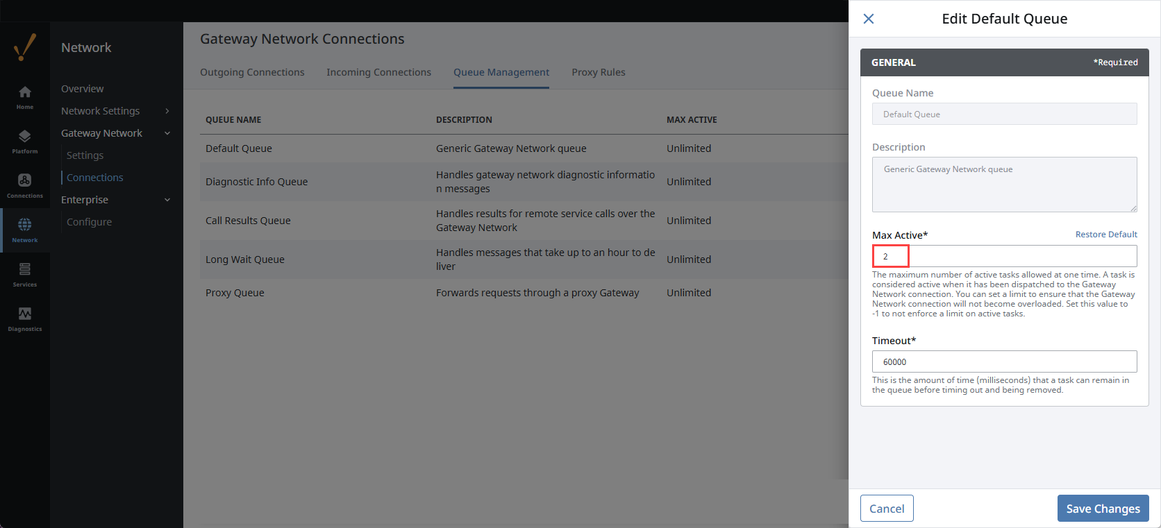 Also, if you are querying tag history though the Gateway Network, adjusting the Max Active number for the Queue Management settings may help avoid bottlenecks or system shutdowns. Navigate to Network > Gateway Network > Connections and select the Queue Management tab to change the Max Active amount from unlimited to a number that best suits your system. Again, you'll need to expand the three dots menu and select Edit to adjust the settings.